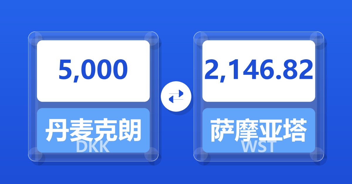 5,000 丹麦克朗 (DKK) = 2,146.82 萨摩亚塔拉 (WST)