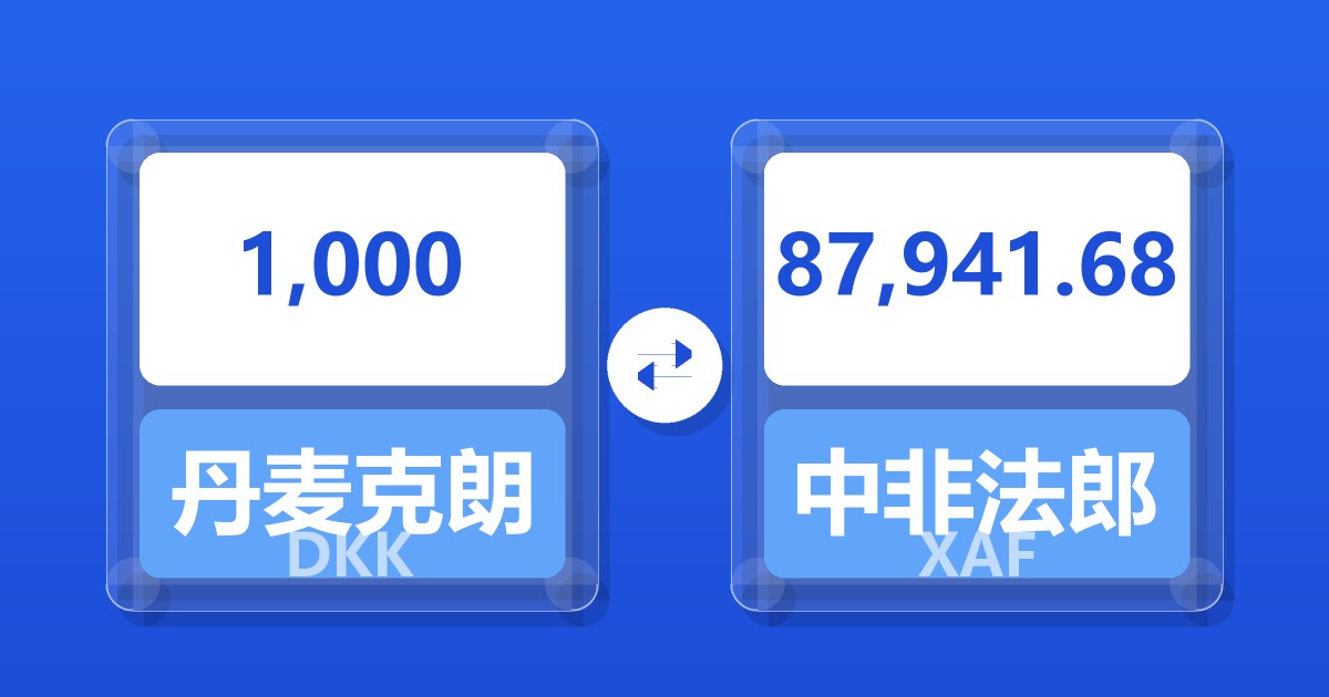 1,000 丹麦克朗 (DKK) = 87,941.68 中非法郎 (XAF)