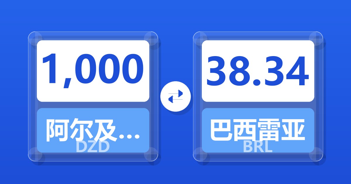 1,000 阿尔及利亚第纳尔 (DZD) = 38.51 巴西雷亚尔 (BRL)