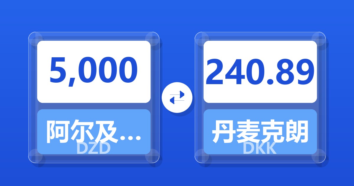 5,000 阿尔及利亚第纳尔 (DZD) = 241.04 丹麦克朗 (DKK)