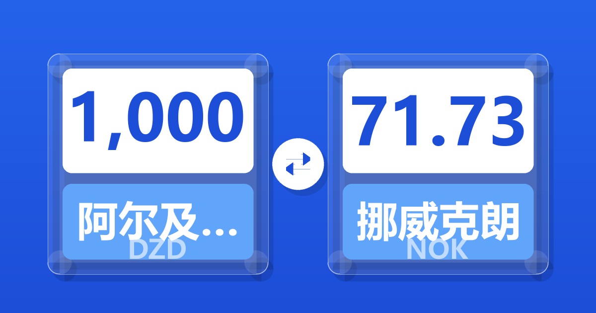 1,000 阿尔及利亚第纳尔 (DZD) = 72.18 挪威克朗 (NOK)