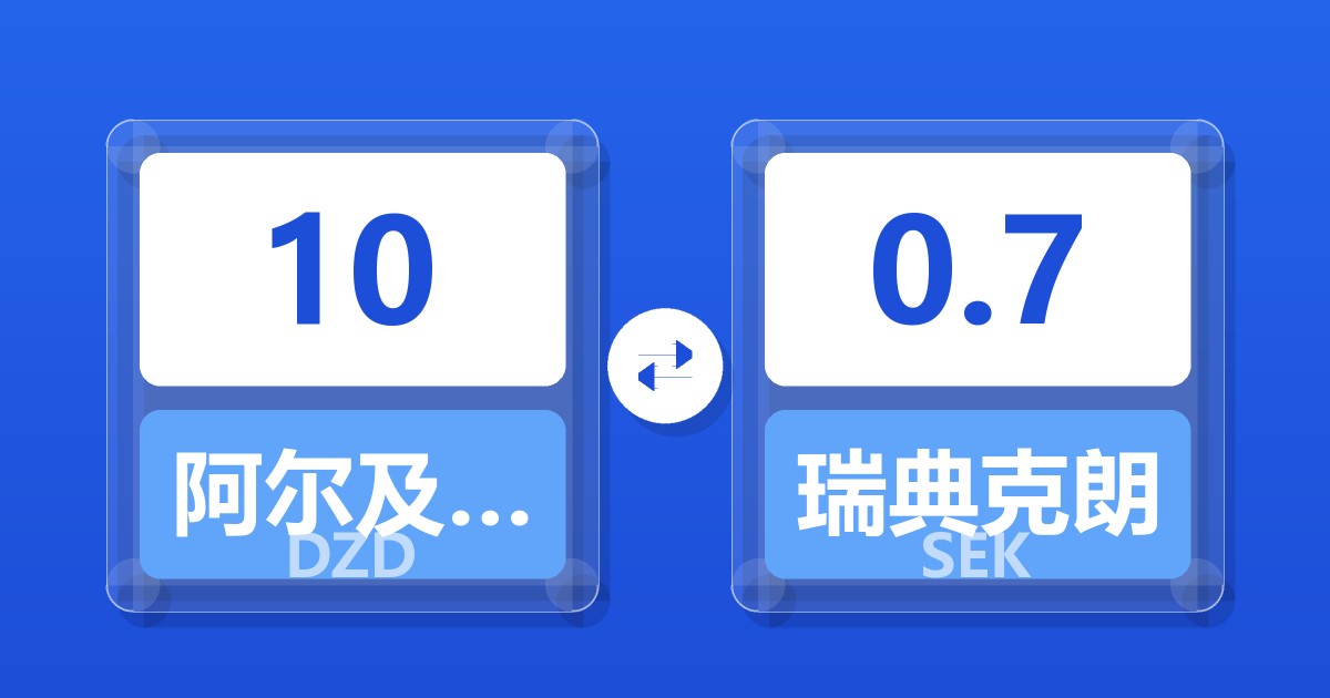10 阿尔及利亚第纳尔 (DZD) = 0.70 瑞典克朗 (SEK)