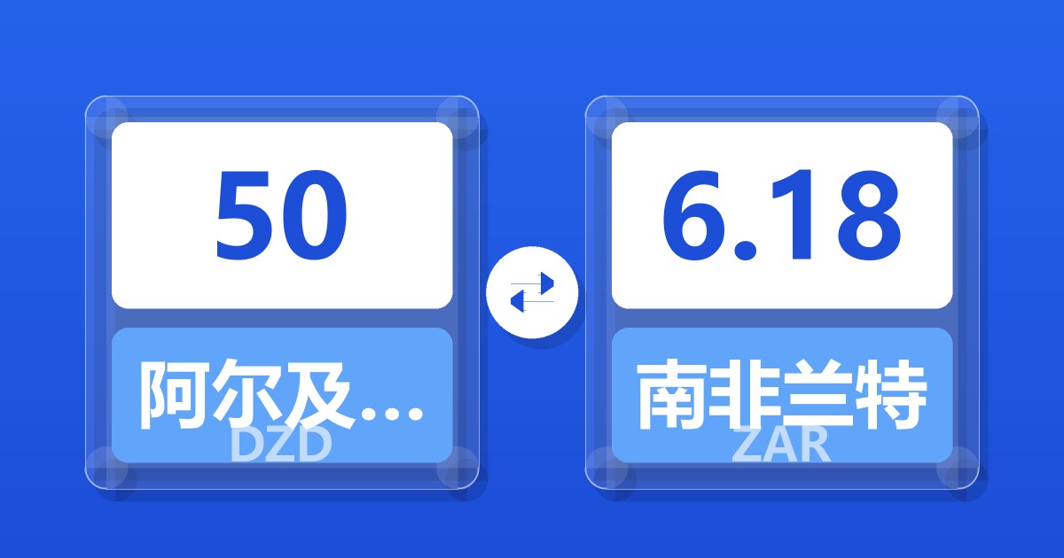 50 阿尔及利亚第纳尔 (DZD) = 6.19 南非兰特 (ZAR)
