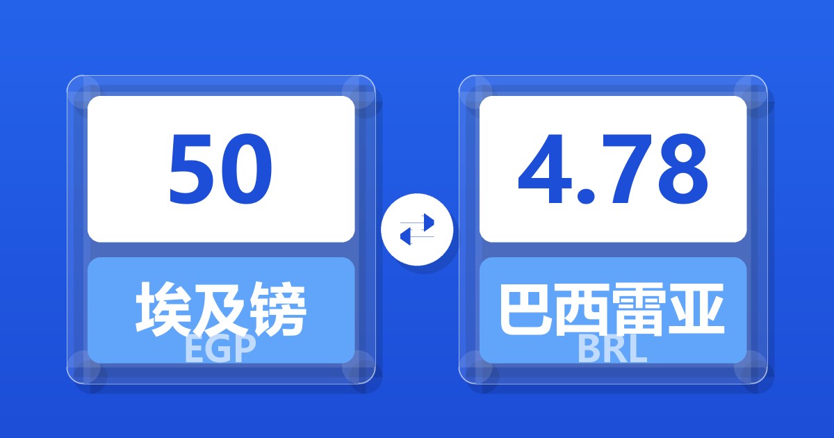 50 埃及镑 (EGP) = 4.78 巴西雷亚尔 (BRL)