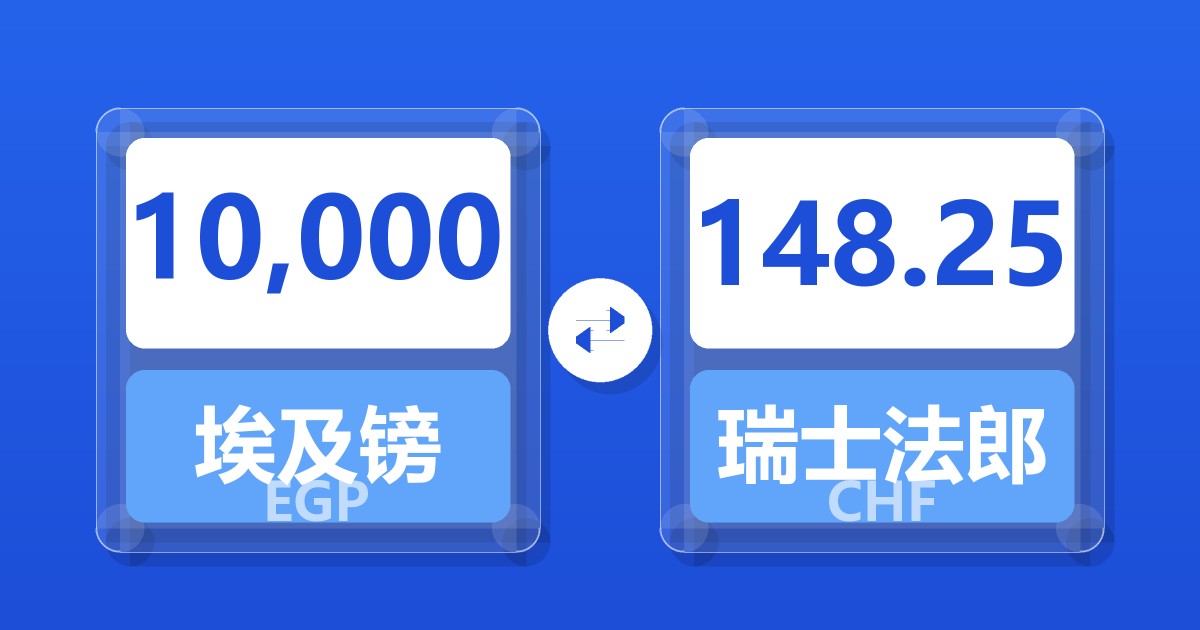 10,000 埃及镑 (EGP) = 148.25 瑞士法郎 (CHF)