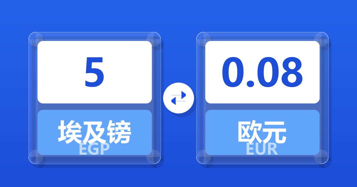 5 埃及镑 (EGP) = 0.08 欧元 (EUR)