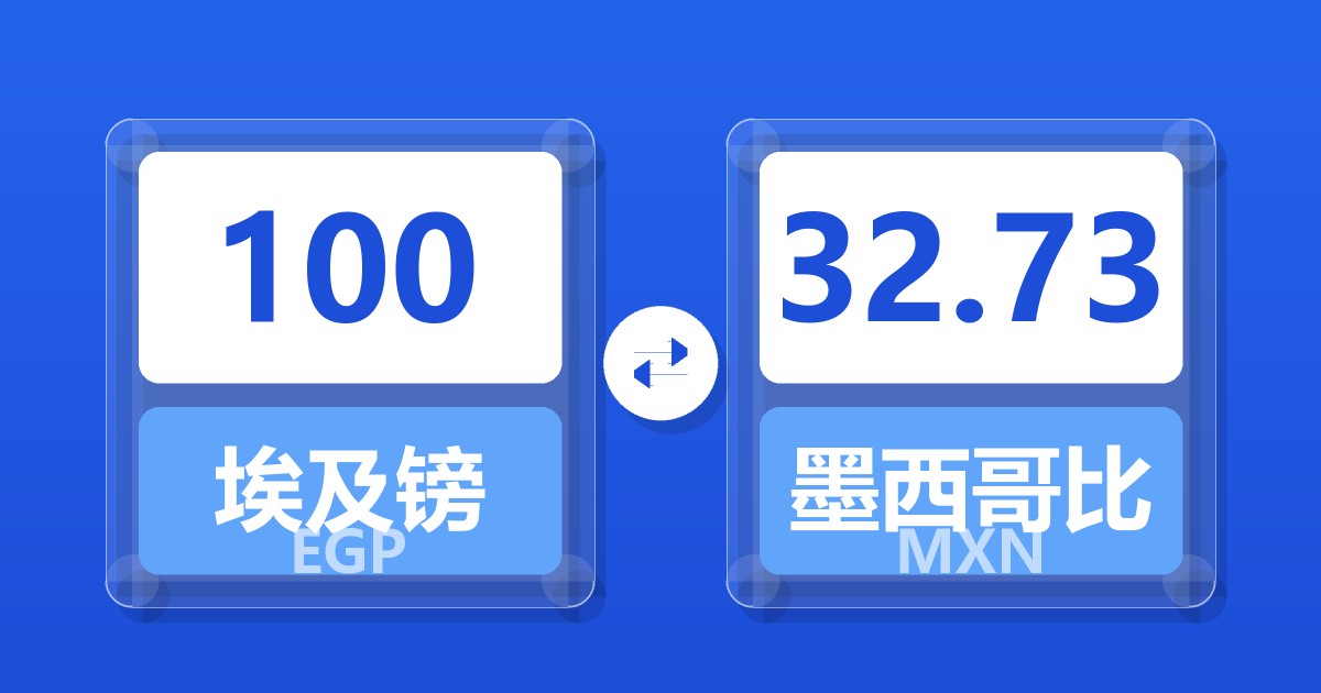 100 埃及镑 (EGP) = 32.70 墨西哥比索 (MXN)