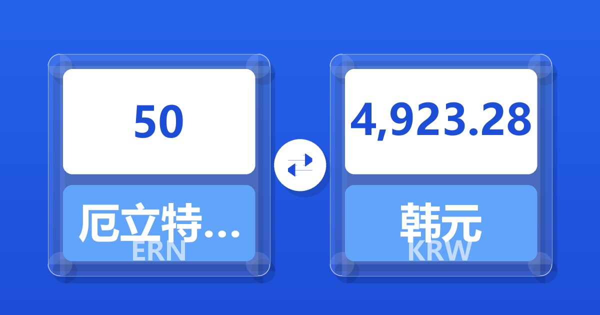 50 厄立特里亚纳克法 (ERN) = 4,926.83 韩元 (KRW)