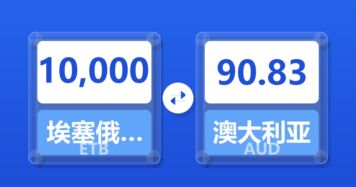 10,000 埃塞俄比亚比尔 (ETB) = 90.80 澳大利亚元 (AUD)