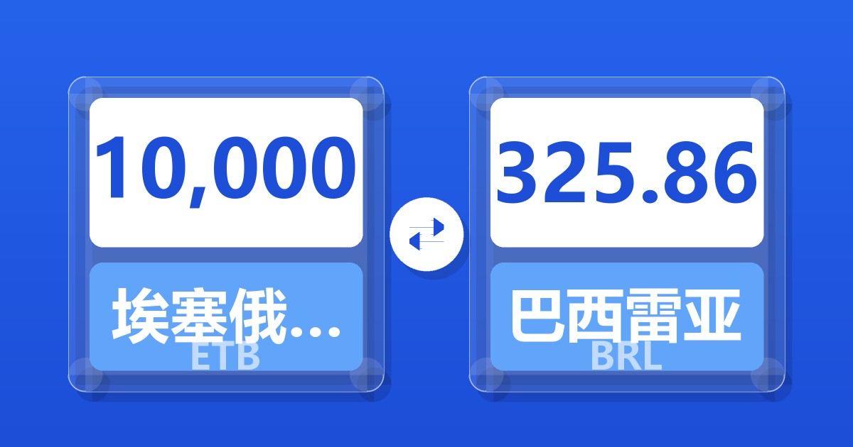 10,000 埃塞俄比亚比尔 (ETB) = 326.42 巴西雷亚尔 (BRL)