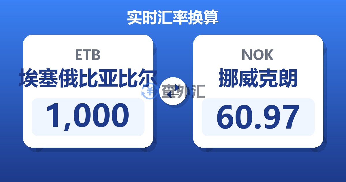 1,000 埃塞俄比亚比尔 (ETB) = 61.19 挪威克朗 (NOK)