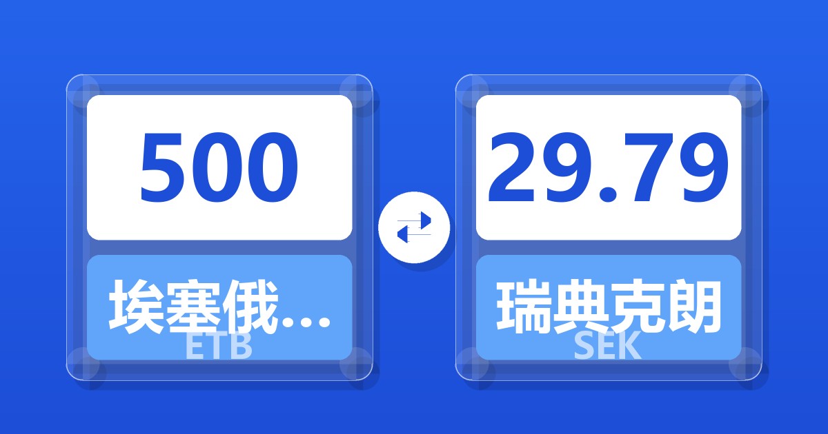 500 埃塞俄比亚比尔 (ETB) = 29.76 瑞典克朗 (SEK)