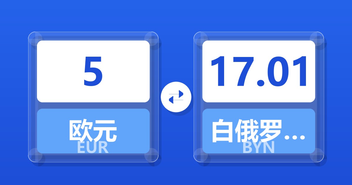 5 欧元 (EUR) = 17.03 白俄罗斯卢布 (BYN)