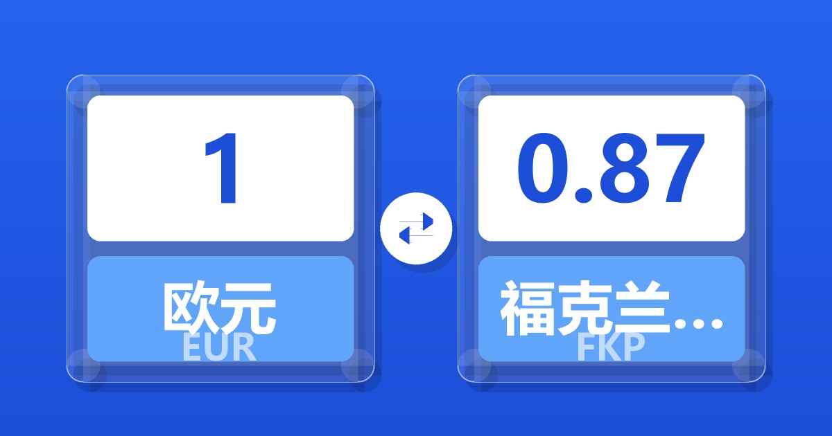 1 欧元 (EUR) = 0.87 福克兰群岛镑 (FKP)