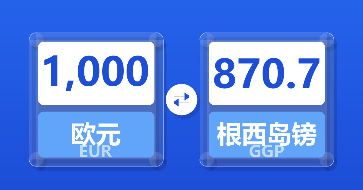1,000 欧元 (EUR) = 870.27 根西岛镑 (GGP)