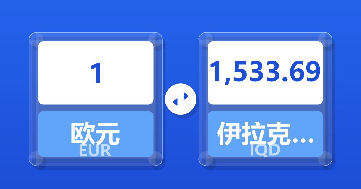 1 欧元 (EUR) = 1,533.13 伊拉克第纳尔 (IQD)