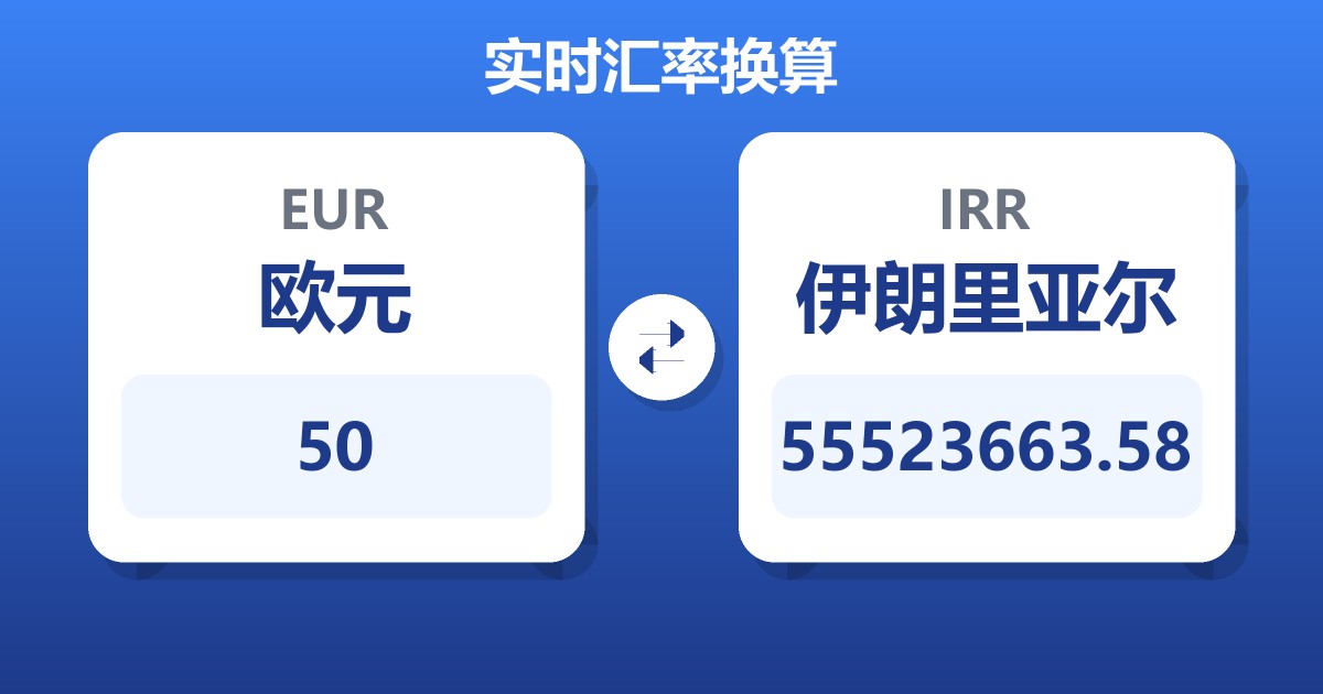 50 欧元 (EUR) = 62,954,709.99 伊朗里亚尔 (IRR)