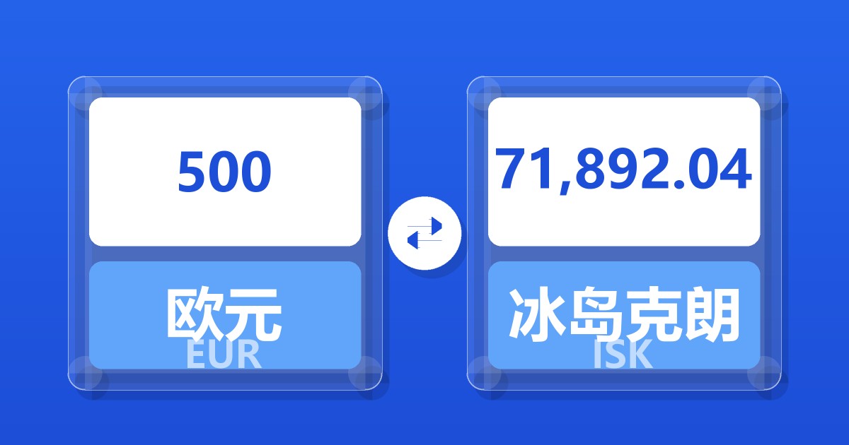 500 欧元 (EUR) = 71,829.81 冰岛克朗 (ISK)