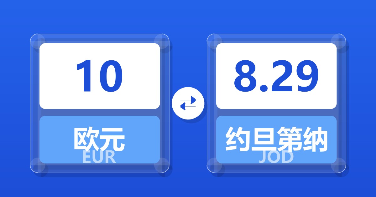 10 欧元 (EUR) = 8.28 约旦第纳尔 (JOD)