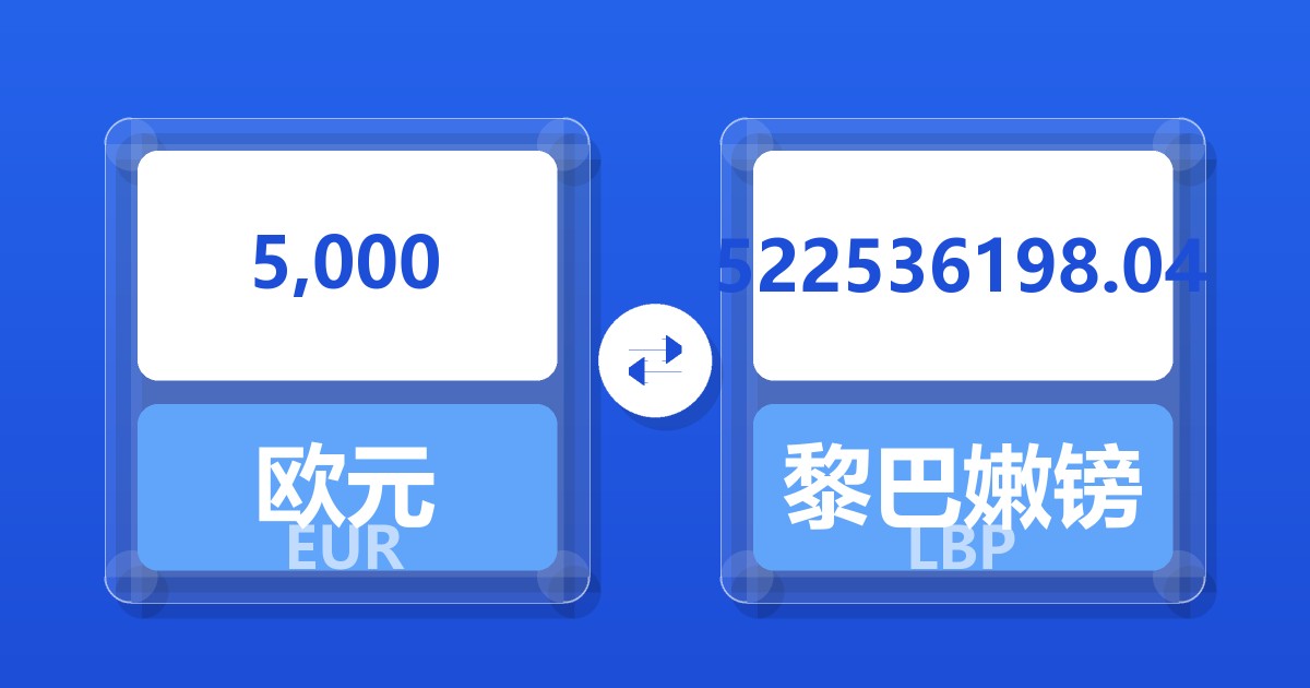 5,000 欧元 (EUR) = 522,536,198.04 黎巴嫩镑 (LBP)