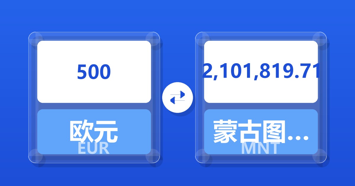 500 欧元 (EUR) = 2,101,819.71 蒙古图格里克 (MNT)