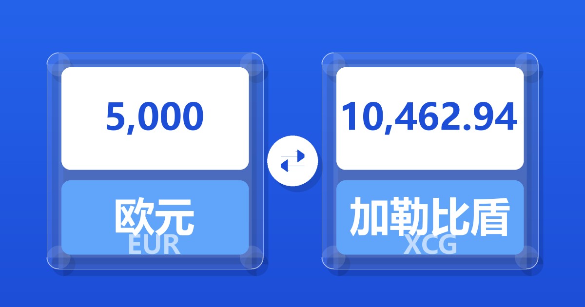 5,000 欧元 (EUR) = 10,450.72 加勒比盾 (XCG)