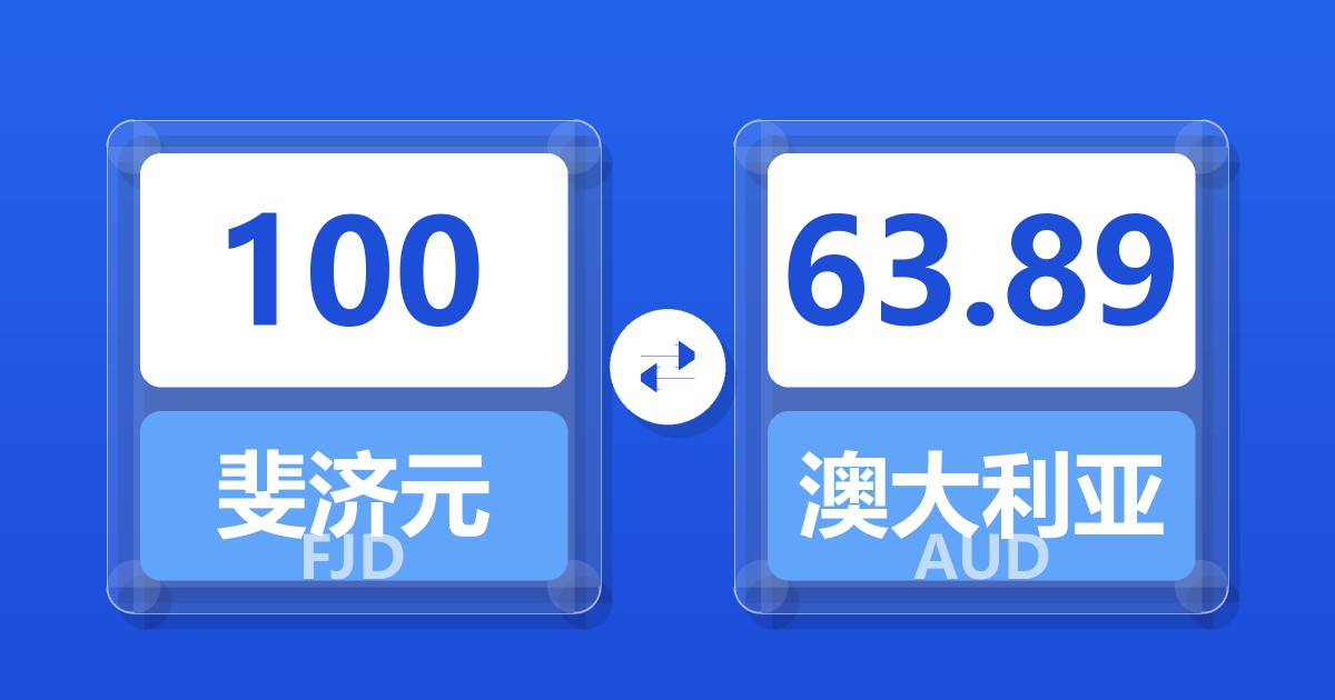 100 斐济元 (FJD) = 64.05 澳大利亚元 (AUD)