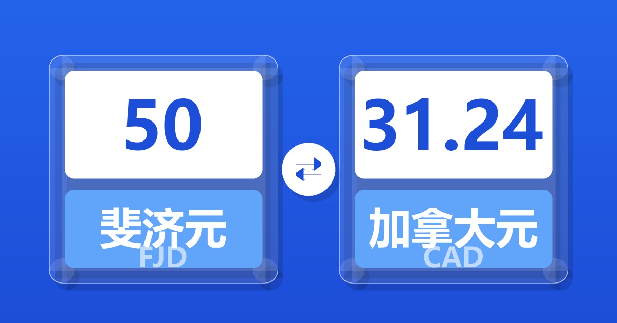 50 斐济元 (FJD) = 31.24 加拿大元 (CAD)