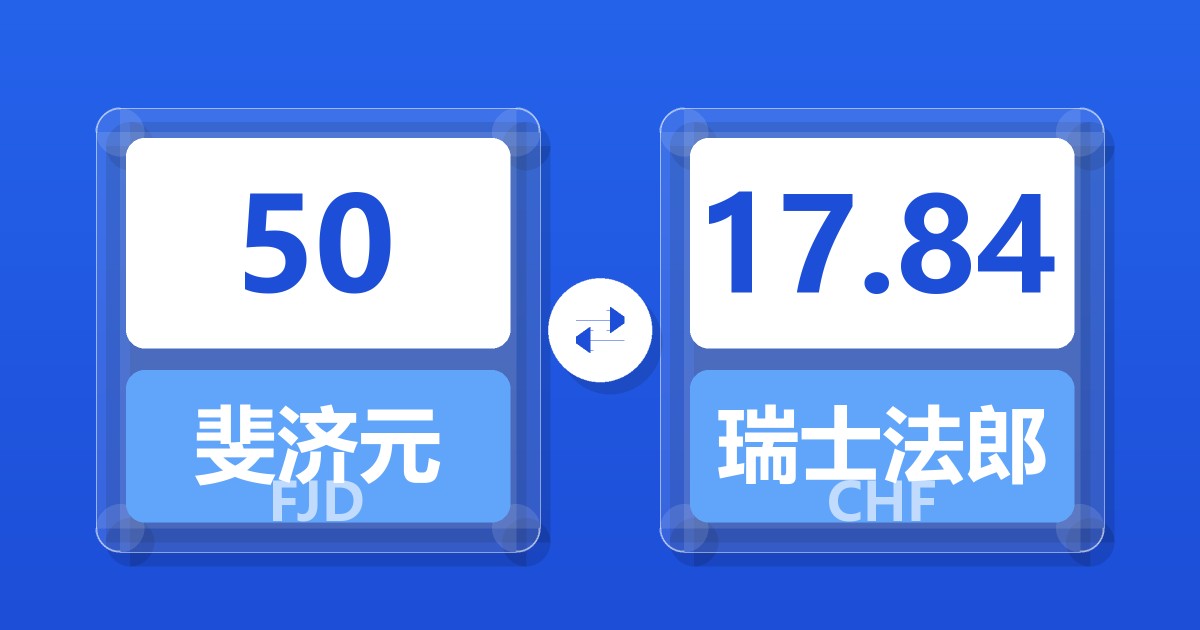 50 斐济元 (FJD) = 17.84 瑞士法郎 (CHF)