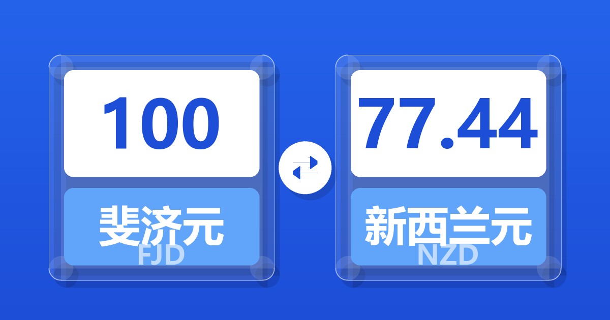 100 斐济元 (FJD) = 77.44 新西兰元 (NZD)