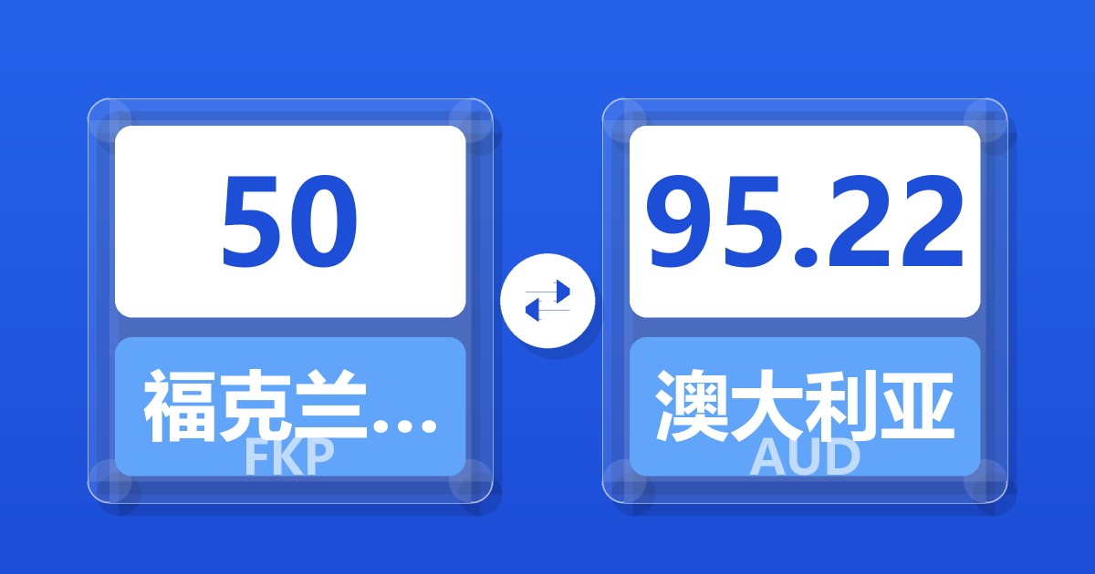 50 福克兰群岛镑 (FKP) = 95.22 澳大利亚元 (AUD)