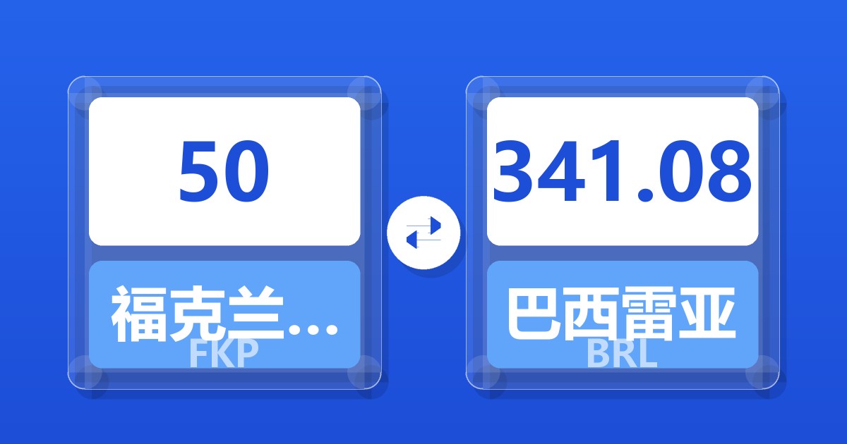50 福克兰群岛镑 (FKP) = 342.32 巴西雷亚尔 (BRL)