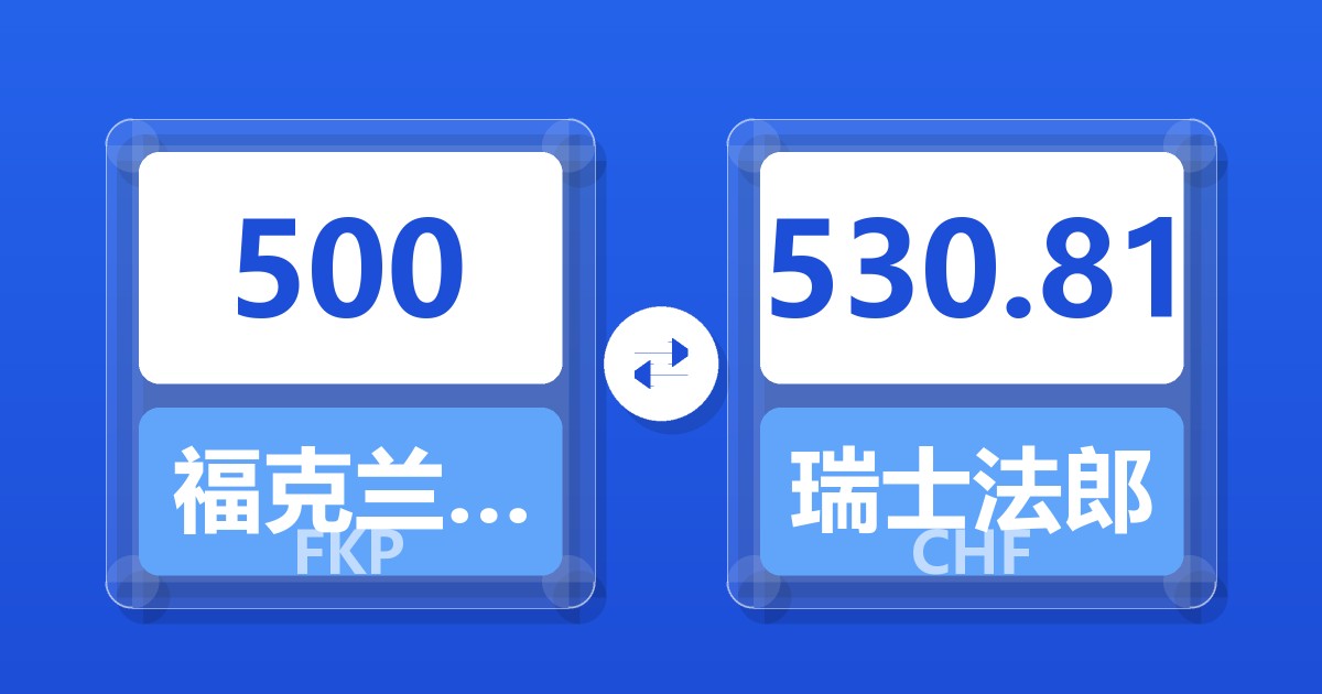 500 福克兰群岛镑 (FKP) = 530.32 瑞士法郎 (CHF)
