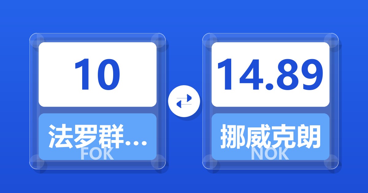 10 法罗群岛克朗 (FOK) = 14.97 挪威克朗 (NOK)