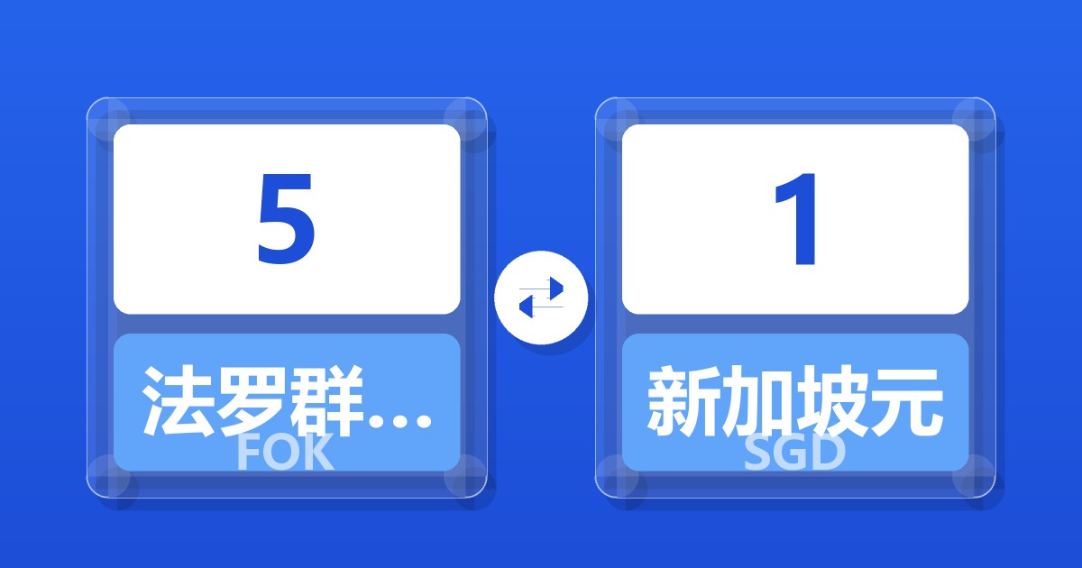 5 法罗群岛克朗 (FOK) = 1.00 新加坡元 (SGD)