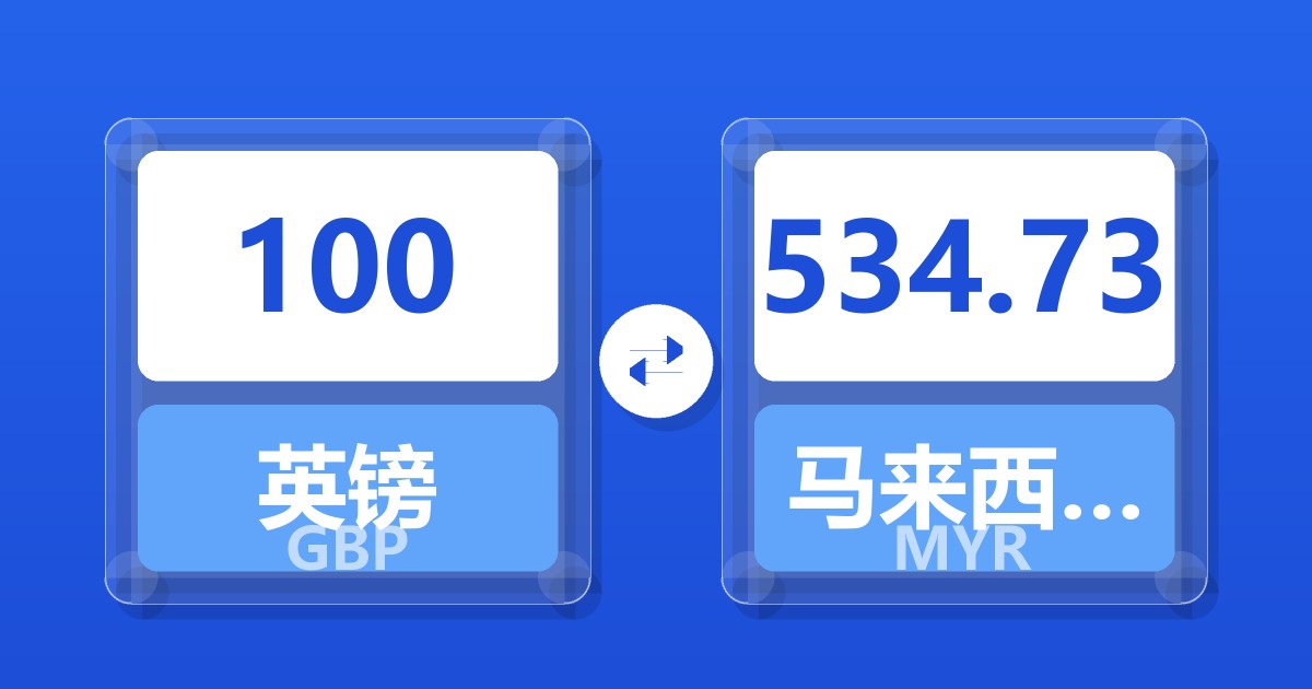 100 英镑 (GBP) = 533.62 马来西亚林吉特 (MYR)