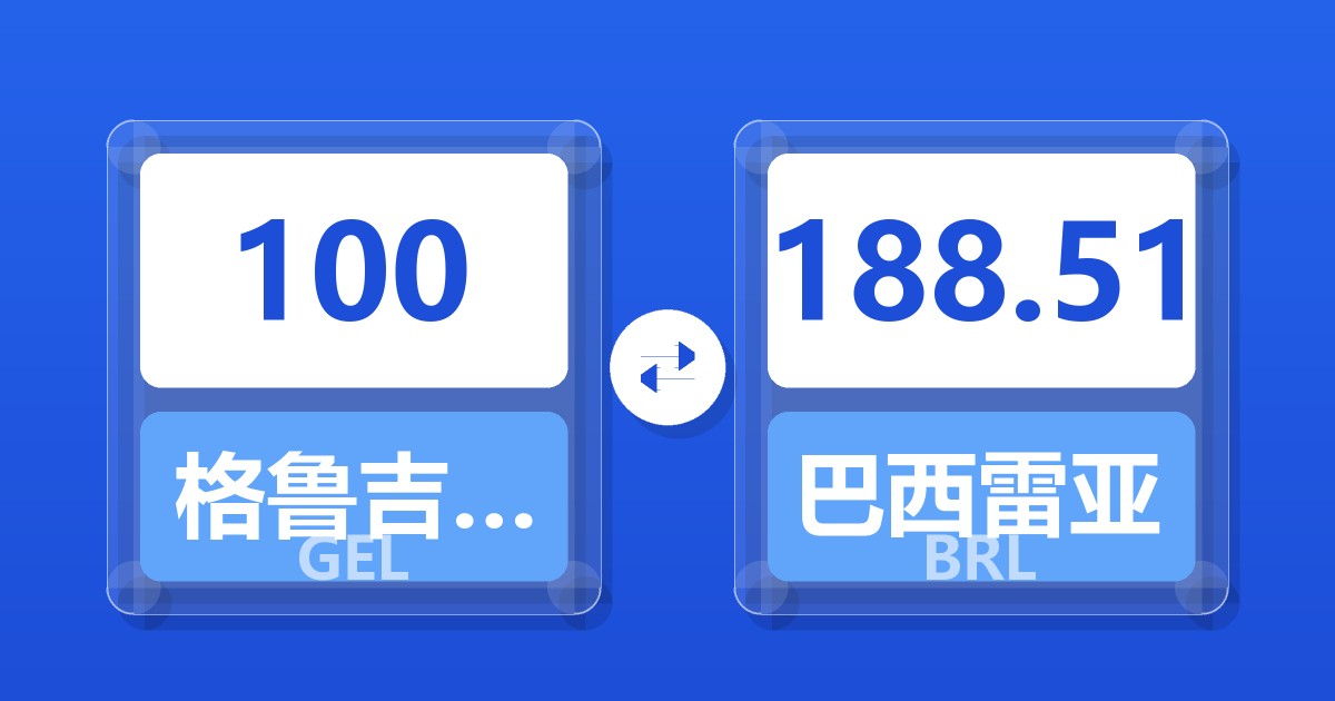 100 格鲁吉亚拉里 (GEL) = 189.38 巴西雷亚尔 (BRL)