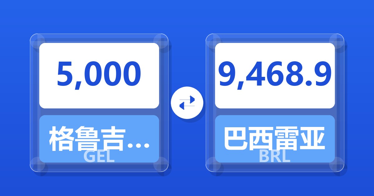 5,000 格鲁吉亚拉里 (GEL) = 9,468.90 巴西雷亚尔 (BRL)