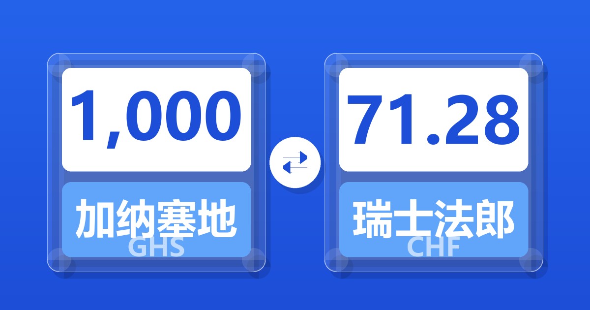 1,000 加纳塞地 (GHS) = 71.36 瑞士法郎 (CHF)