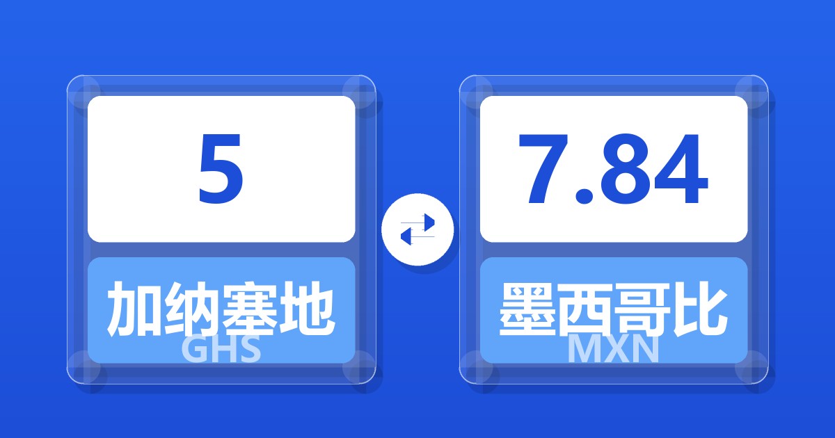5 加纳塞地 (GHS) = 7.87 墨西哥比索 (MXN)