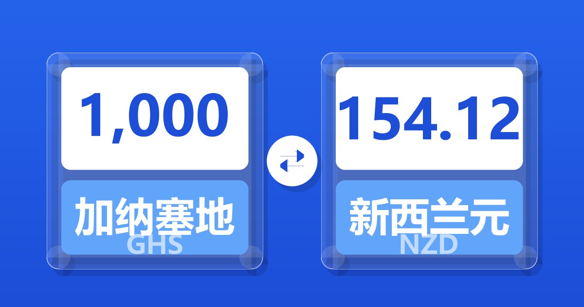 1,000 加纳塞地 (GHS) = 154.92 新西兰元 (NZD)