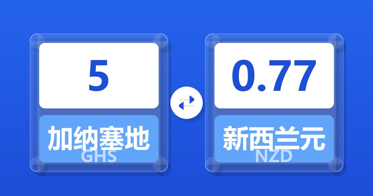 5 加纳塞地 (GHS) = 0.77 新西兰元 (NZD)