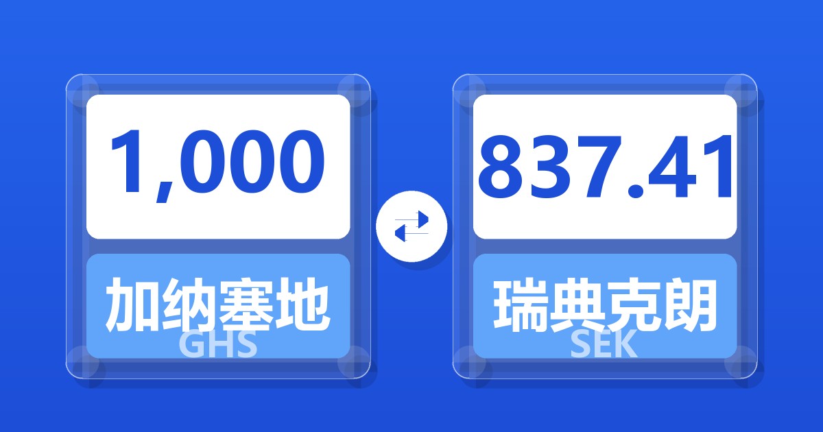 1,000 加纳塞地 (GHS) = 839.78 瑞典克朗 (SEK)