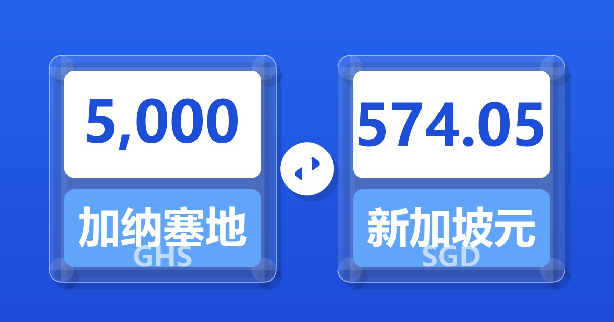 5,000 加纳塞地 (GHS) = 575.04 新加坡元 (SGD)