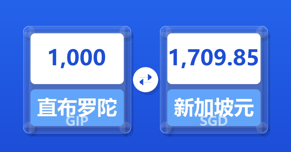 1,000 直布罗陀镑 (GIP) = 1,709.51 新加坡元 (SGD)