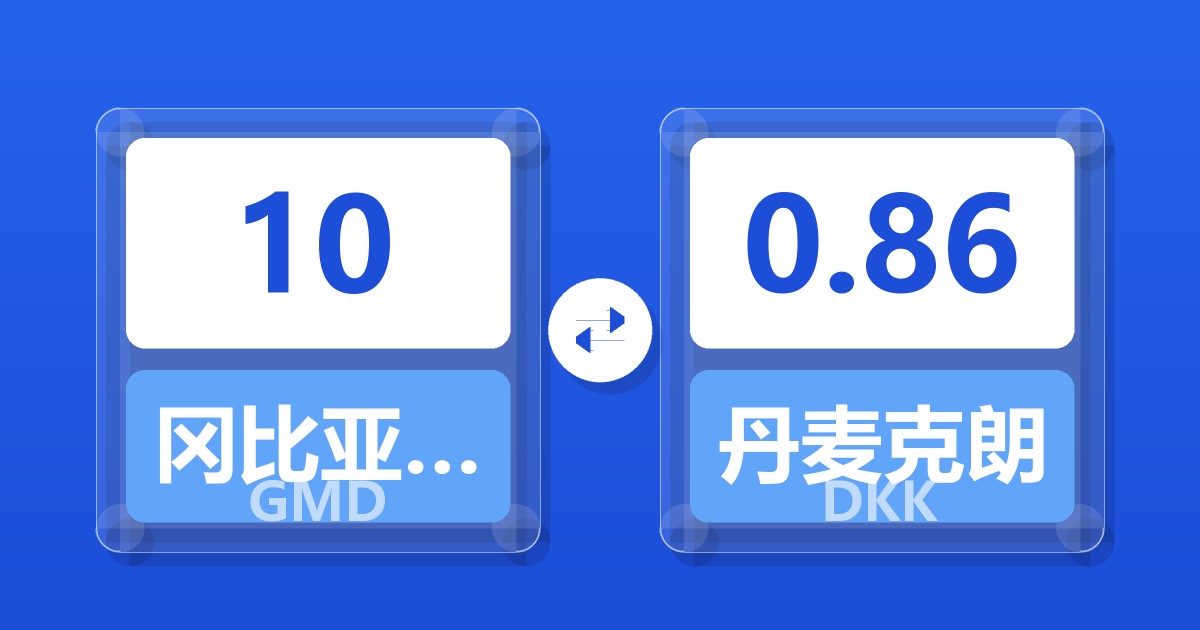 10 冈比亚达拉西 (GMD) = 0.86 丹麦克朗 (DKK)