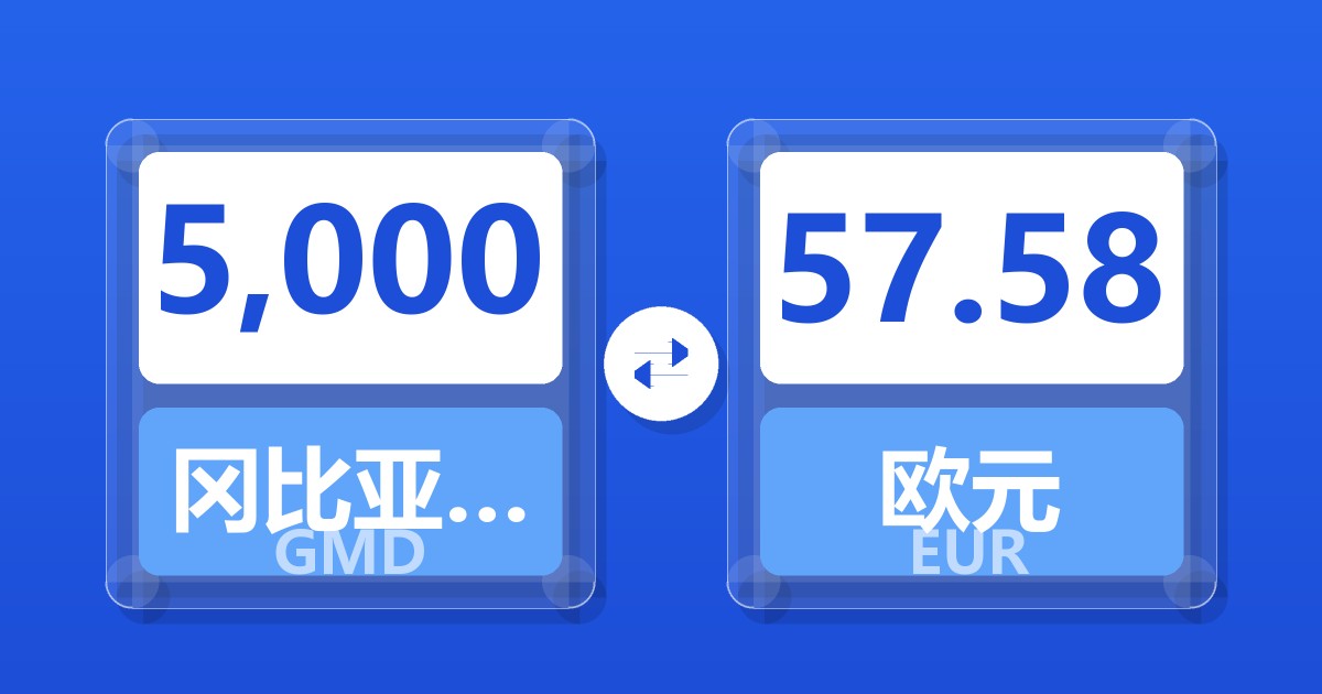 5,000 冈比亚达拉西 (GMD) = 57.61 欧元 (EUR)