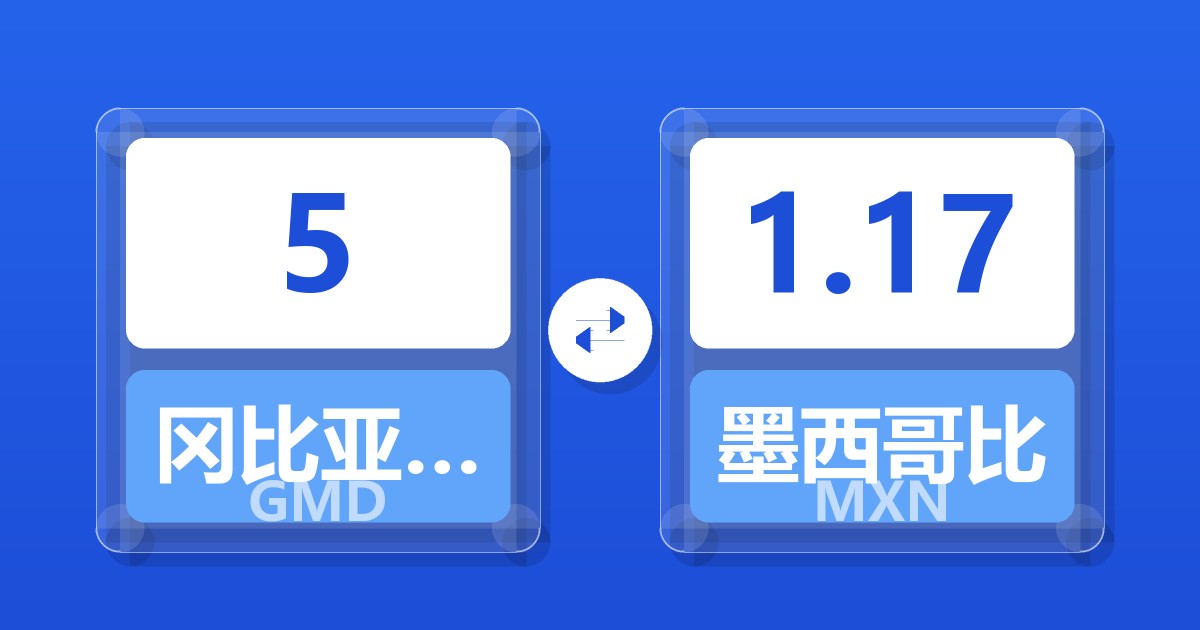 5 冈比亚达拉西 (GMD) = 1.17 墨西哥比索 (MXN)