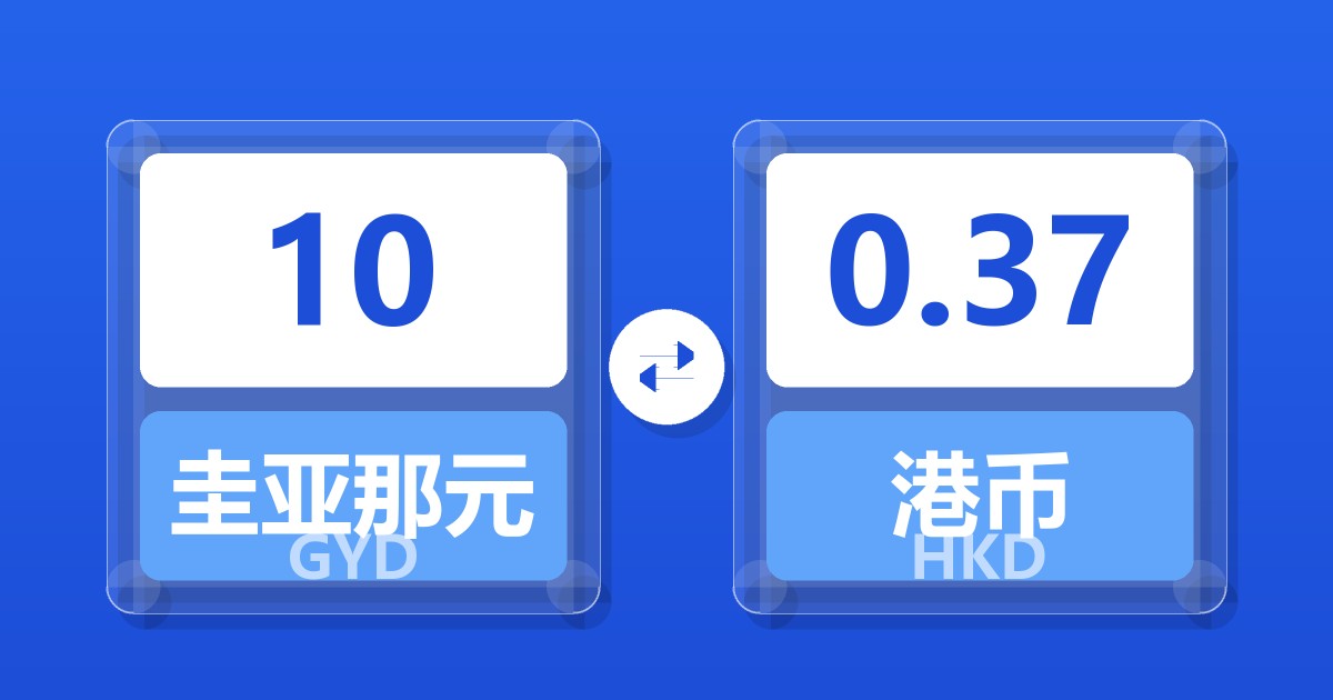 10 圭亚那元 (GYD) = 0.37 港币 (HKD)