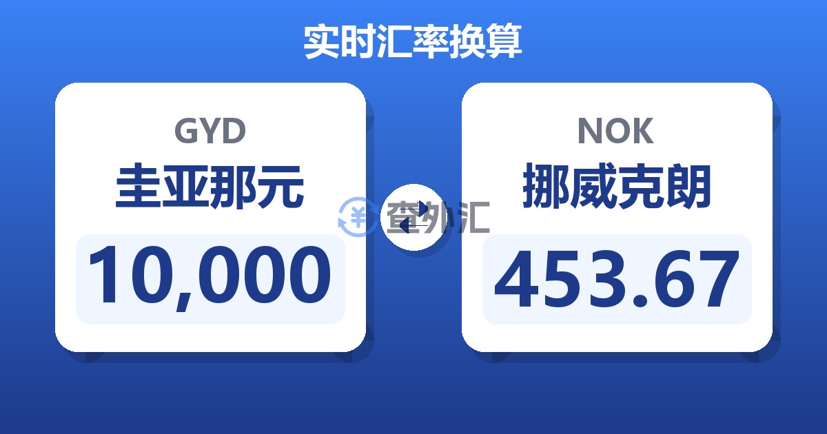 10,000 圭亚那元 (GYD) = 456.10 挪威克朗 (NOK)